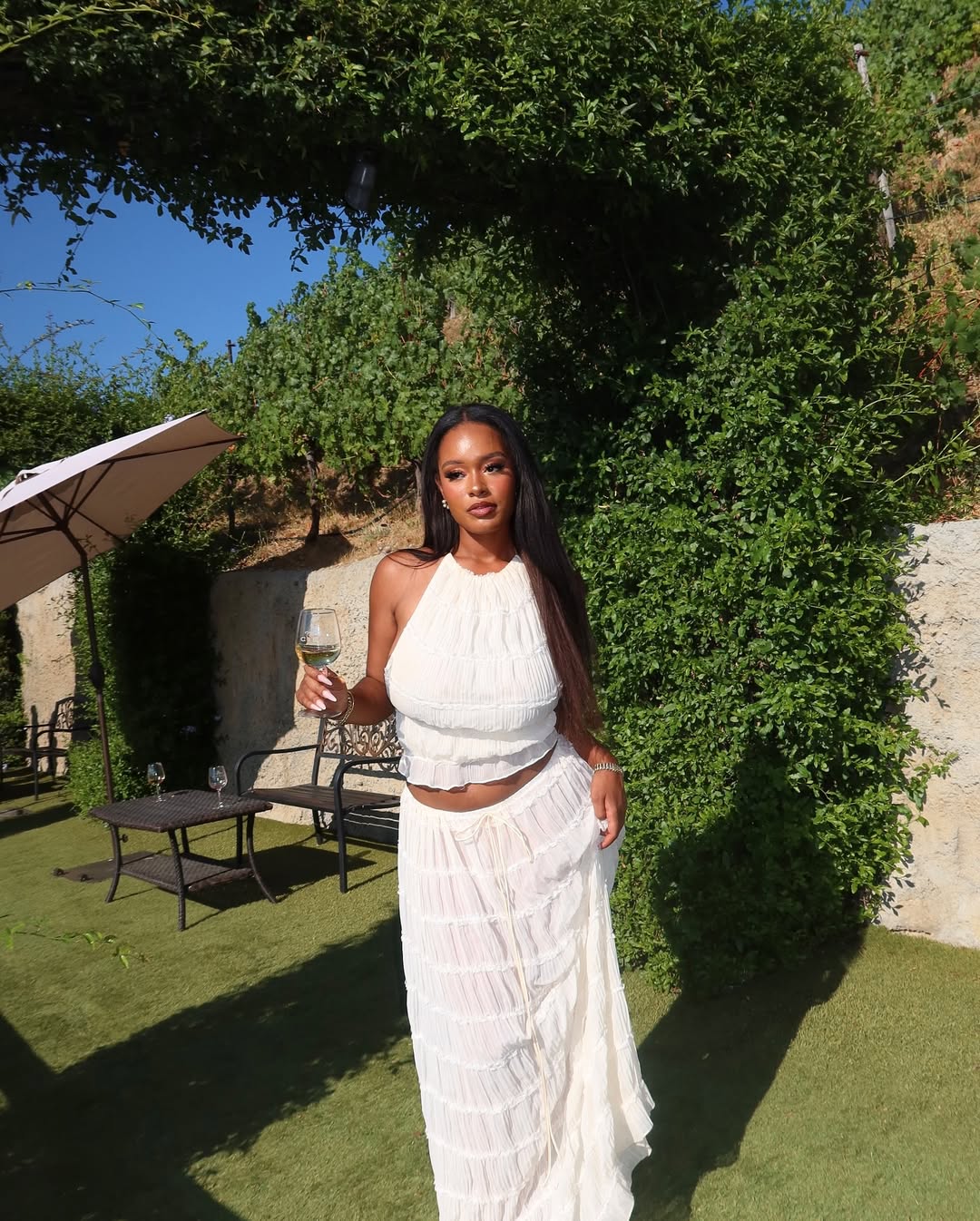 The adjustable haltered top offers a tailored fit, while the maxi skirt cascades in a fluid silhouette, creating an ethereal and alluring look. Whether you’re walking barefoot on sun-kissed sands or sipping cocktails as the sunset paints the sky, Beleza is your perfect companion for moments of timeless beauty.
